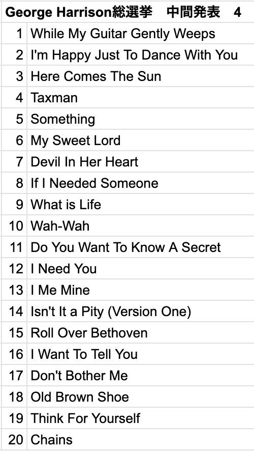 George Harrisonのリリースした全曲を対象にランキングを決定し、
