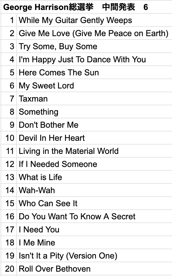 George Harrisonのリリースした全曲を対象にランキングを決定し、